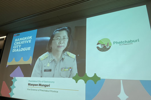 On February 10, 2023, Mrs. Wanpen Mangsri, Deputy Governor of Phetchaburi Province, attended the "Bangkok Creative City Dialogue" event at the Creative and Design Center in Bangkok. and participated in the exchange of experiences Promoting Phetchaburi, a UNESCO creative city of food and benefits from being a creative city of food in Phetchaburi together with representatives of the network of UNESCO Creative Cities from 9 other countries namely Sahikawa, Japan (design branch), Bandung, Indonesia (design branch), Bangkok, Thailand (design branch), Kuching, Malaysia (food branch), Nagoya, Japan (design branch), Perth, UK (Handicrafts and Folk Arts), Seoul, South Korea (Design), Singapore, Singapore (Design), and Wuhan, China (Design)
