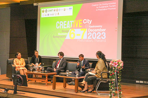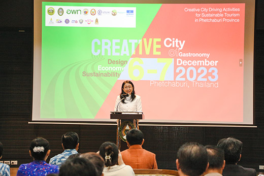 On December 6, 2023, Phetchaburi Province joined with Phetchaburi Rajabhat University. and the Special Area Development Administration Organization for sustainable tourism (Public Organization) or DADA organized a seminar on Creative City of Gastronomy: Creative Design, Economy and Sustainability at Eksak Butlap Room. Sumet Tantivejkul Building Phetchaburi Rajabhat University