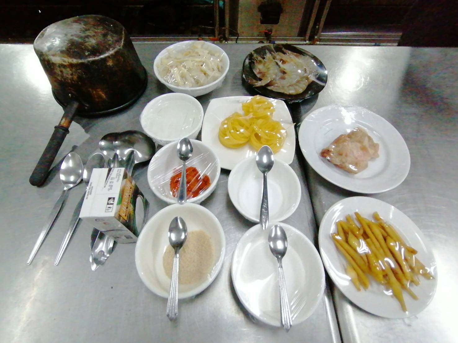 เมนู "แกงหัวตาลหมูย่างกุ้งสดกับพลาสต้า"