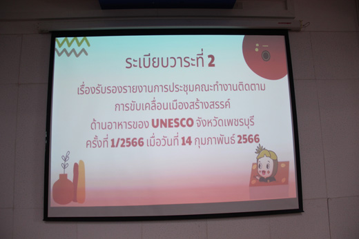 เมื่อวันที่ 12 มิถุนายน 2566 นายณัฏฐชัย นำพูลสุขสันติ์ ผู้ว่าราชการจังหวัดเพชรบุรี หัวหน้าส่วนราชการ ภาคเอกชน ภาคประชาชน ร่วมประชุมคณะทำงานติดตามการขับเคลื่อนเมืองสร้างสรรค์ด้านอาหารของยูเนสโก ณ ห้องประชุม ศาลากลางจังหวัดเพชรบุรี