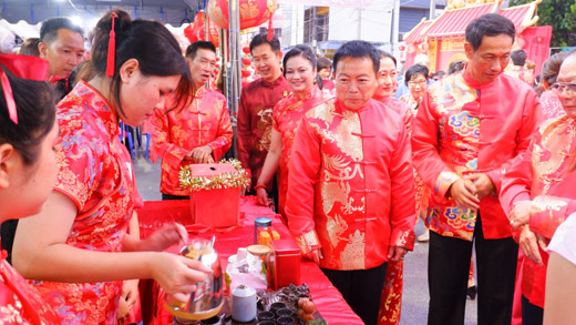 เมื่อวันที่ 10 กุมภาพันธ์ 2567 นายณัฏฐชัย นำพูลสุขสันติ์ ผู้ว่าราชการจังหวัดเพชรบุรี นายกเหล่ากาชาดจังหวัดเพชรบุรี นายภคพัส ส่งวัฒนายุทธ รองผู้ว่าราชการจังหวัดเพชรบุรี นางธิวัลรัตน์ อังกินันทน์ สมาชิกสภาผู้แทนเขต1 นายกสมาคมชาวจีนเพชรบุรี นายกเทศมนตรีเมืองเพชรบุรี คณะกรรมการสหสมาคม-มูลนิธิสมาคมชาวจีน 7 คณะ นักท่องเที่ยว และประชาชนชาวไทยเชื้อสายจีนเข้าร่วมงานเทศกาลตรุษจีนที่บริเวณแยกวัดธ่อ ถนน 18 เมตร อำเภอเมืองเพชรบุรี จังหวัดเพชรบุรี โดยมีกิจกรรมร่วมกับชาวบ้านผัดหมี่เหลืองด้วยตะหลิวยื่นยาวบนกระทะกว้างแบนใหญ่ แจกจ่ายให้ผู้มาร่วมงานได้ลิ้มชิมรสชาติอย่างอิ่มอร่อย สร้างความสุขทางใจ จากความเชื่อหากได้รับประทานหมี่เหลืองผัด ในวันตรุษจีนอายุจะยืนยาว